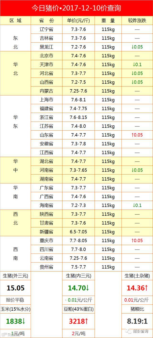 今日猪价•2017-12-10全国猪价