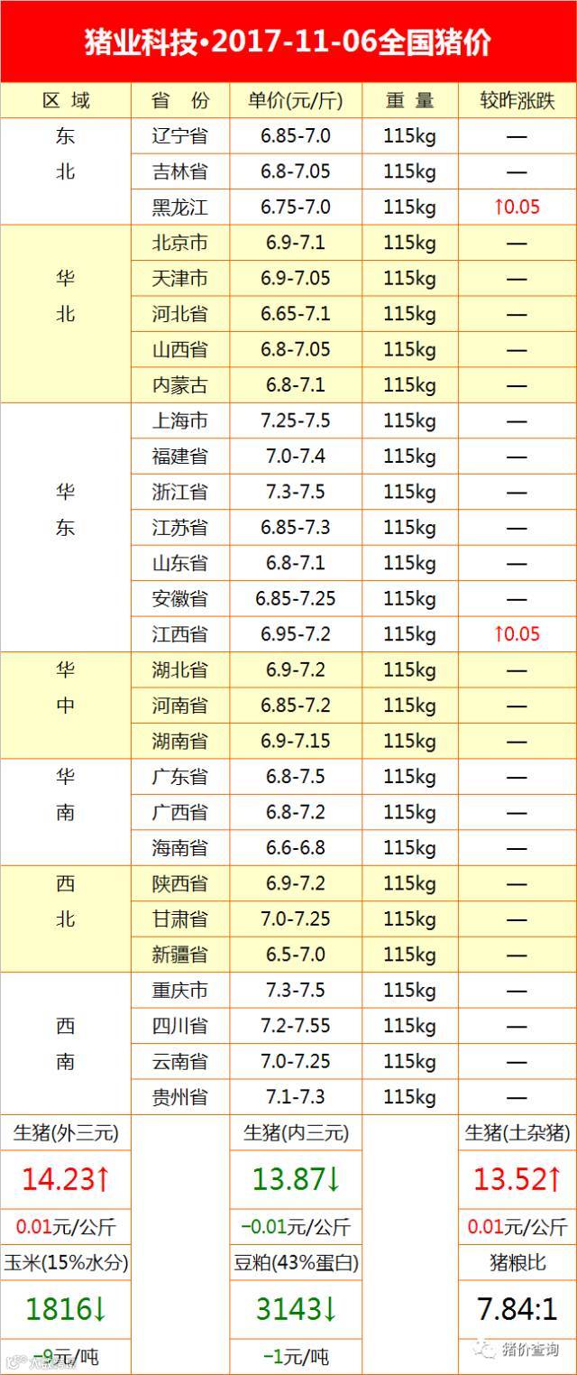 今日猪价•2017-11-06全国猪价 山东质德农牧