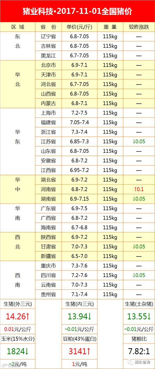 今日猪价•2017-11-01全国猪价