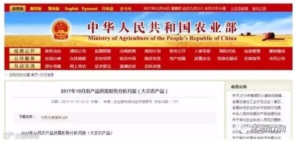 近日,农业部发布了“2017年10月农产品供需形式分析月报”。