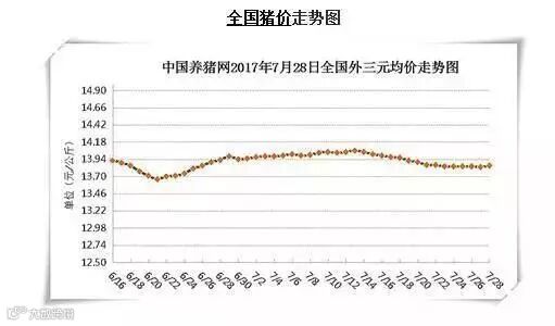 就当前情况而言现在北方部分地区近几日降雨现象比较明显,就连气温都有了明显的降低,猪价处于震荡微幅下跌的趋势中,在这一次的下跌中到现在猪价合计下跌0.22元/公斤!我们可以发现实际在六月中旬之后猪价一直都处于13.6-14元/公斤之间震荡。所以当前猪价根本谈不上是跌了或者涨了!即使这几天天气有所好转,但国内整体的消费需求依旧没有明显改善!因此全国均价的上涨可能在本月内没有希望了!