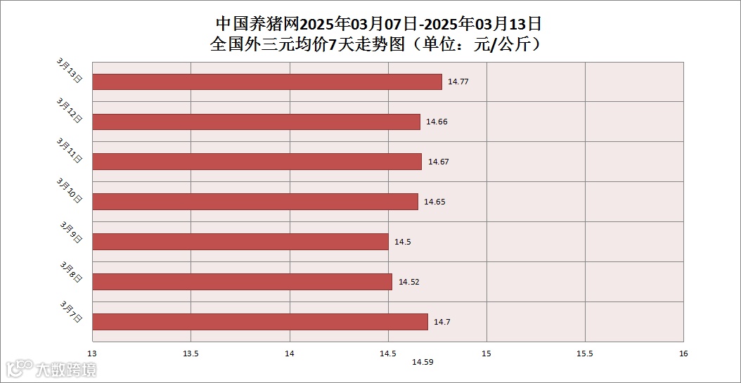 根据“2025年03月13日-中国养猪网生猪(外三元)均价涨跌表”发现,国内外三元生猪价格呈现飘红上涨的态势。近期,生猪市场面临供应端压力持续存在的情况,大型猪企为了达成出栏目标,持续维持较高的出栏量。然而,随着传统消费淡季的到来,市场需求表现疲软,这在一定程度上制约了猪价的上涨空间。不过,部分区域出现了二次育肥以及小规模养殖户的抗价行为,这些因素虽然分散且规模有限,但也在一定程度上对生猪供应格局产生了影响。此外,饲料成本价格的不断走高也加剧了养殖端的挺价意愿。当前猪价仍处于相对底部,而玉米、豆粕等饲料原料价格的上涨增加了养殖成本,这使得养殖端在出栏决策上更加谨慎。今日猪价的微幅上涨是市场供需关系、养殖成本等多重因素共同作用的结果。然而,未来猪价走势仍存在不确定性,养殖户需密切关注市场动态,合理规划出栏策略,以应对可能出现的市场波动。