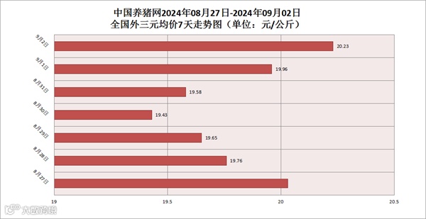 其他生猪品种方面,生猪内三元均价为20.00元/公斤,价格较昨日(19.91元/公斤)上涨了0.09元/公斤;生猪土杂猪均价为19.51元/公斤,价格较昨日(19.44元/公斤)上涨了0.07元/公斤。