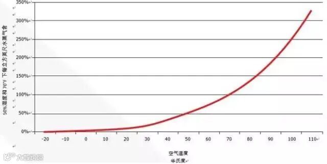 相对湿度是指在一定温度下,空气中的水蒸汽的实际含量与最大水蒸汽含量的百分比。随着温度的升高,空气可以容纳更多的水分。这种关系如图表1所示,