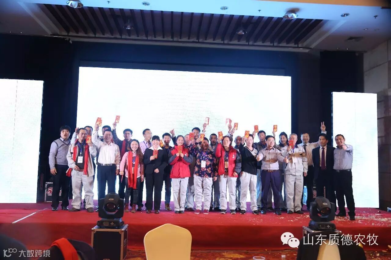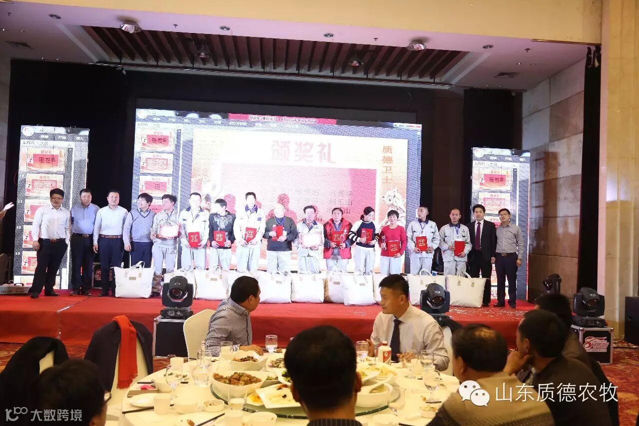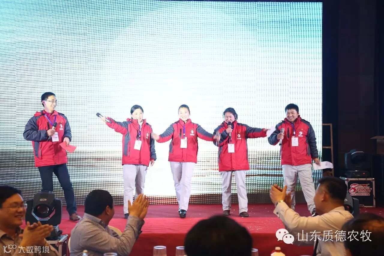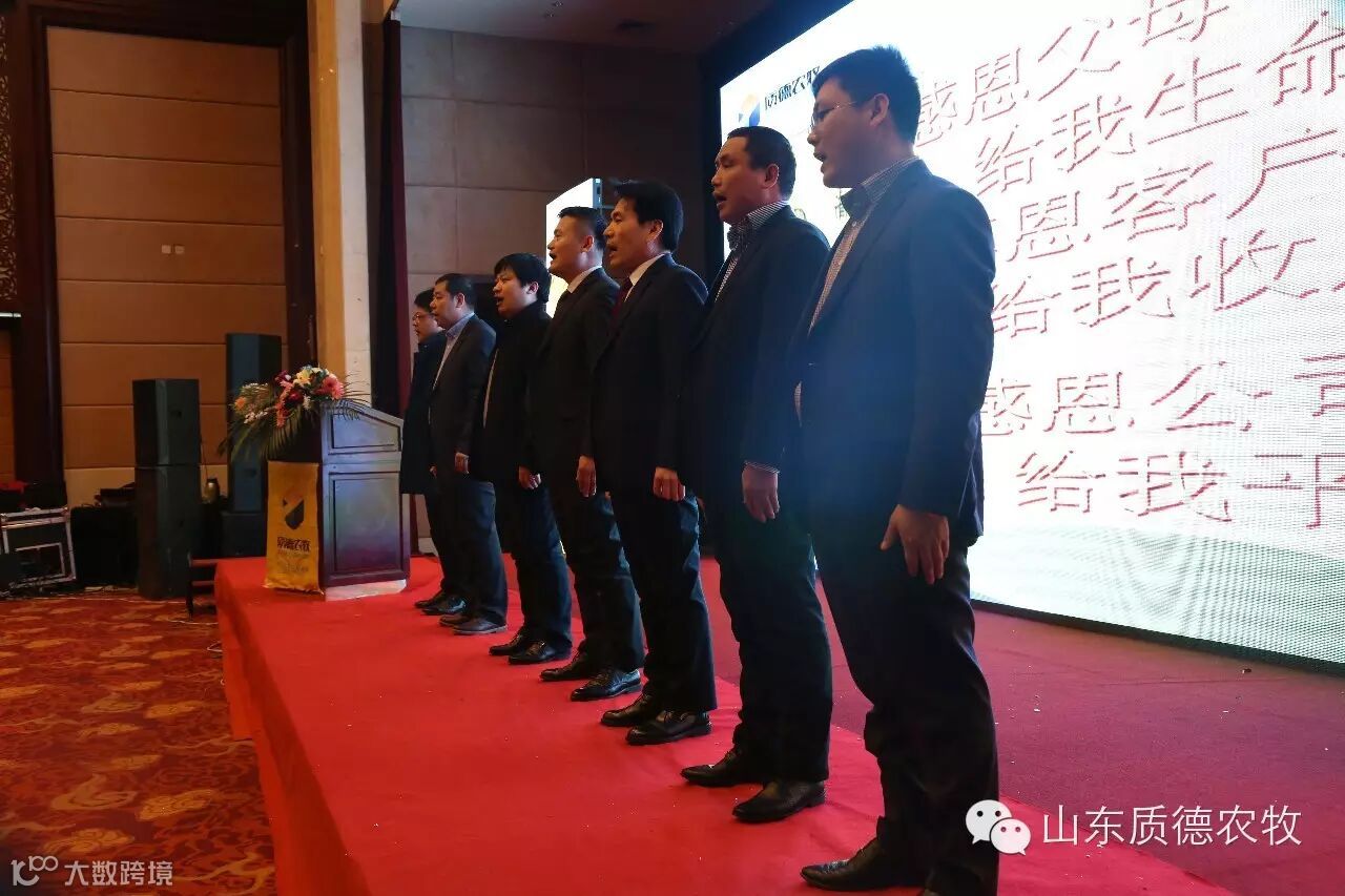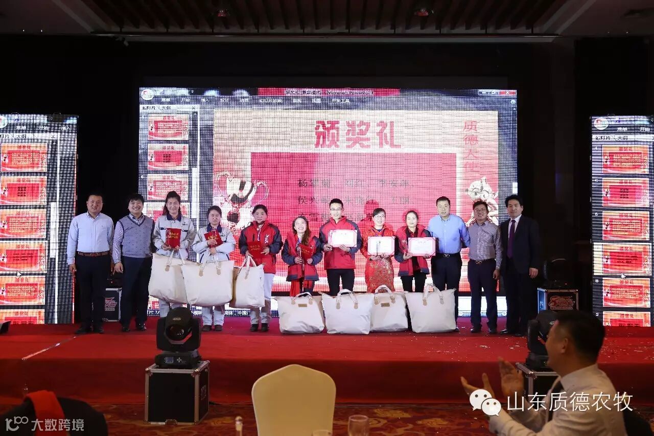 质德农牧六年的成就离不开11位股东和各位家人的不懈努力和辛勤汗水,表彰优秀,鼓励先进的颁奖是年会的主要内容之一。年会现场颁发了“质德天使”、“质德卫士”、“金算盘”、“优秀主管”,对质德家人在2015年的努力工作给予了充分肯定。随后,德州公司家人轩云良和他的兄弟为大家带来了一首《兄弟干杯》,临沂家人苗子野为大家演唱了一首优美歌曲《当爱已成往事》,再次沸腾了全场。最后是由德州家人表演的手语《步步高》谢幕。