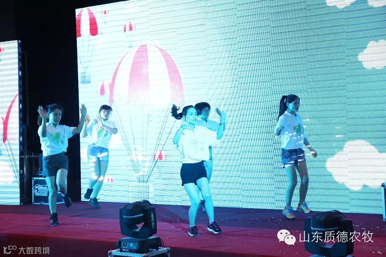 年会由答谢晚宴和内部培训两部分构成。12月29日晚上18:00,质德农牧六周年年会正式拉开帷幕,开场舞是由聊城质德家人带来的火辣舞蹈《火了火了》,劲爆的开场舞给人以巨大的视觉冲击。
