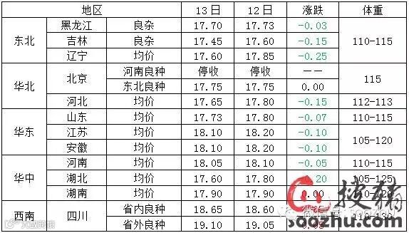 国内各地区生猪结算均价表
