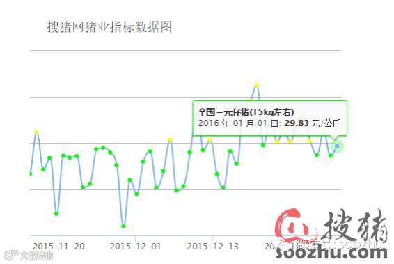 【仔猪价格】2016年第1周,三元仔猪的价格虽较上周略有回落,但仍保持在30元/公斤的高位,较去年同期的18.68元/公斤,同比上涨了近60%。涨幅远大于猪价,已折射出仔猪的供应量较为紧张,而且补栏积极性明显较去年同期大幅回升。由此可知,广大养猪人普遍看好2016年5月份后的生猪市场。