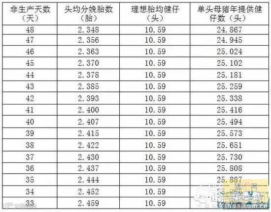 三、非生产天数对猪场生产及经营的影响 1、非生产天数对猪场生产潜力的影响 表1 非生产天数与单头母猪年产胎数及提供健仔数关系