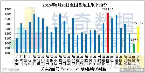 据猪e网锐奇数据检测当地玉米报价信息统计,2015年08月20日国内各地玉米平均价格为2351.35元/吨,较昨日(08月19日)2334.95元/吨上涨16.40元/吨,涨幅为0.70%。据此次检测的省市中,最高价格为湖南省2629.17元/吨,最低价格新疆省1987.50元/吨(以上价格均已换算成含水分为14%的标准玉米)。今日大部分玉米深加工企业收购价格呈现稳中态势,山东个别企业收购价格维持下跌态势,下调幅度在5-20元/吨。8月20日在安徽粮食批发交易市场及其联网市场举行的国家临时存储进口玉米竞价销售交易会顺利结束,本次交易会计划销售美国2号黄玉米75143吨,全部流拍。