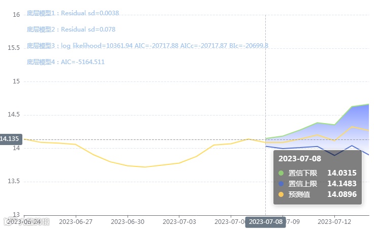 玄田算法是由项目课题组团队原创的非经典逻辑数值聚合理论和不确定性预测方法,构建了基于一致模算子的生猪价格预测模型。该模型采用的聚合函数及一致模相关理论与方法已获得多项国家自然科学基金和省级自然科学资金资助,并获得多项省级自然科学奖奖项。07月08日预测猪价为14.0896,置信区间在14.0315-14.1483之间。07月09日预测猪价为14.0896;07月10日预测猪价为14.1410。