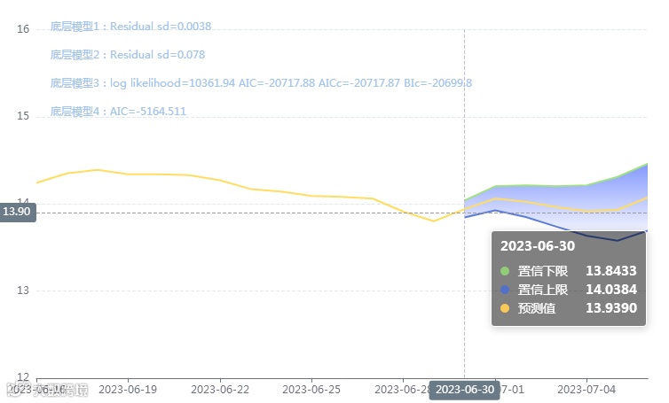 玄田算法是由项目课题组团队原创的非经典逻辑数值聚合理论和不确定性预测方法,构建了基于一致模算子的生猪价格预测模型。该模型采用的聚合函数及一致模相关理论与方法已获得多项国家自然科学基金和省级自然科学资金资助,并获得多项省级自然科学奖奖项。6月30日预测猪价为14.9390,置信区间在13.8433--14.0384之间。7月1日预测猪价为14.0596;7月2日预测猪价为14.0245。