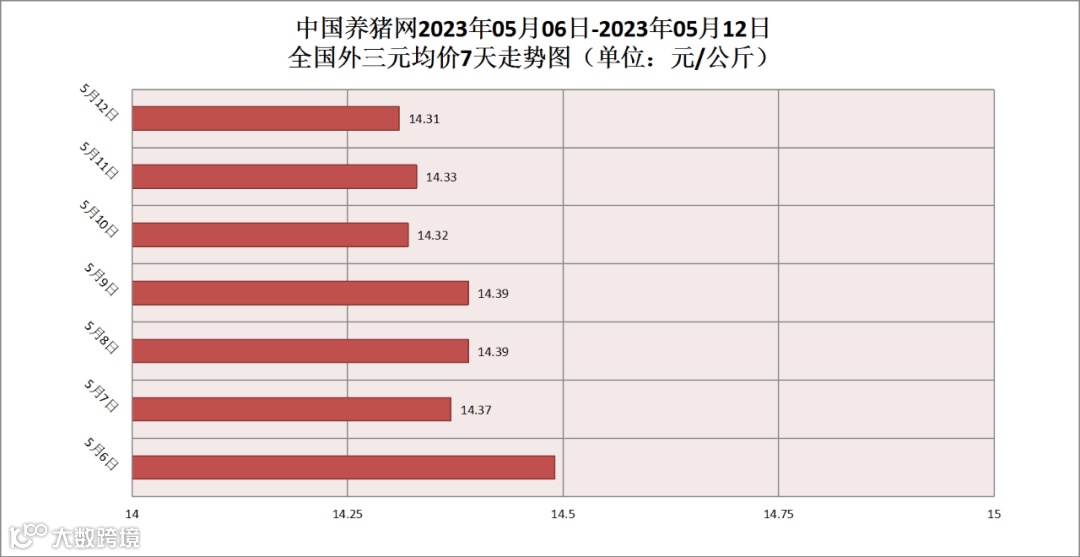 1、外三元方面:福建省14.68元/公斤、甘肃省14.06元/公斤、湖南省14.51元/公斤、北京市15.05元/公斤、海南省13.70元/公斤、吉林省13.95元/公斤、云南省13.98元/公斤;