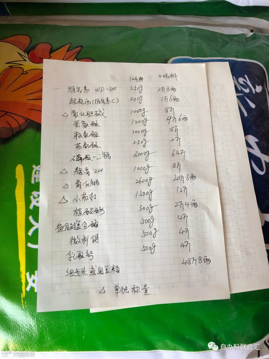 汇员鸡场刘某某是第一次使用自办料的汇员鸡场,单栋存栏25000只。由于汇员是第一次接触自办料,技术老师从腰鼓预混机的使用、生产配方的计算、小料称量注意事项、投料顺序、预混时间各方面悉心的为实际操作人员进行了现场指导;又从鸡群的饲养管理、疾病的防治等给予合理建议。让汇员鸡场真正的感受到自办料联合汇的贴心技术服务。