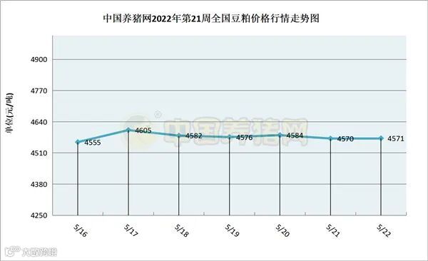 中国养猪网2022年第21周国内豆粕走势图
