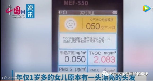年仅1岁多的女儿原本有一头漂亮的头发,但1个多月前突然开始狂掉头发,随后被医院诊断为斑秃。四川内江的林女士称,在排除孩子自身身体原因后,她从医生处得知斑秃也和甲醛超标等环境因素有关。为此,她怀疑女儿去了两个多月的早教中心,因为其在去年底才装修完毕。