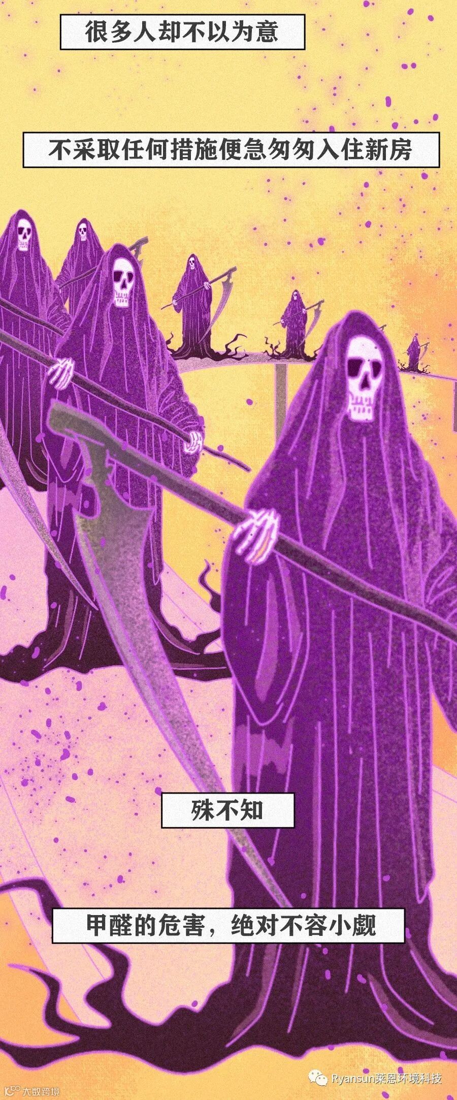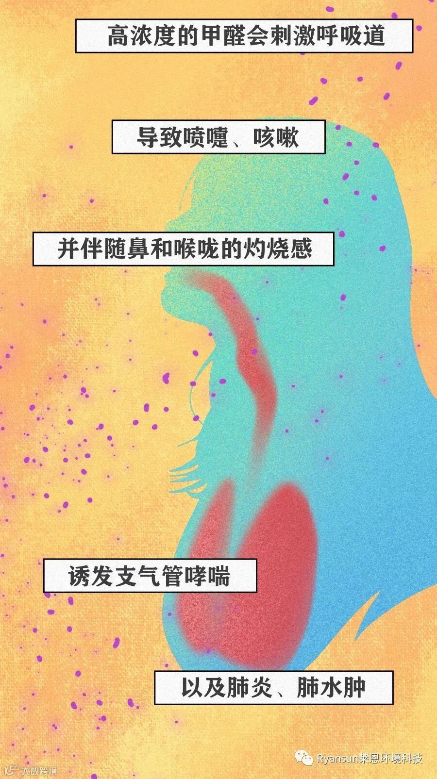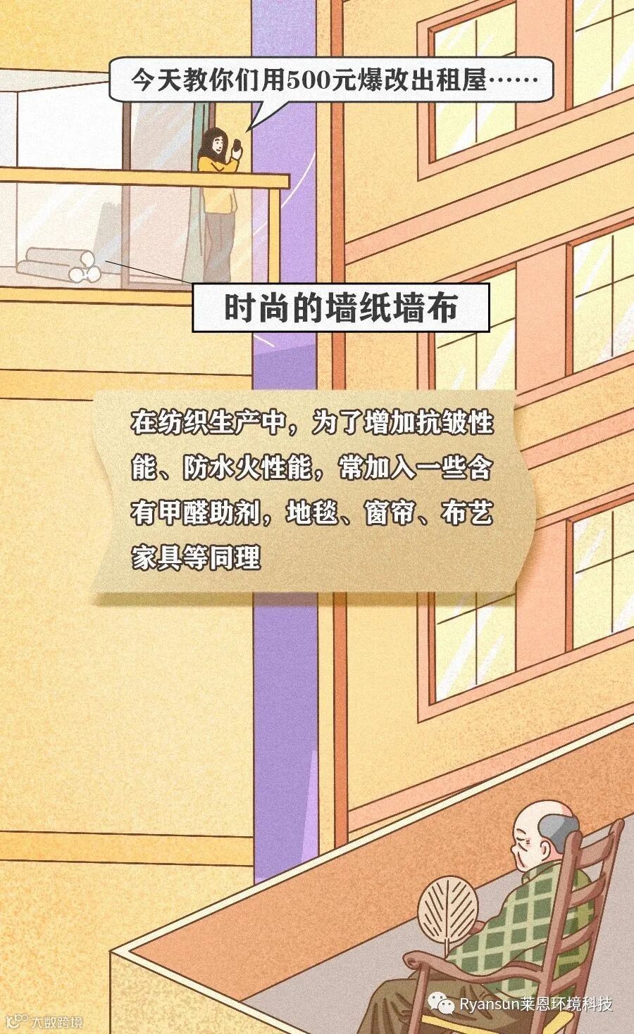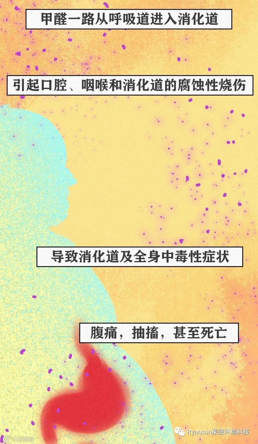 莱恩提醒大家,千万别不拿健康当回事。甲醛对人体危害极大,它可以通过呼吸道吸入、经口食入和经皮肤接触,危害人体的健康,引起不适、病变,白血病,甚至导致死亡。