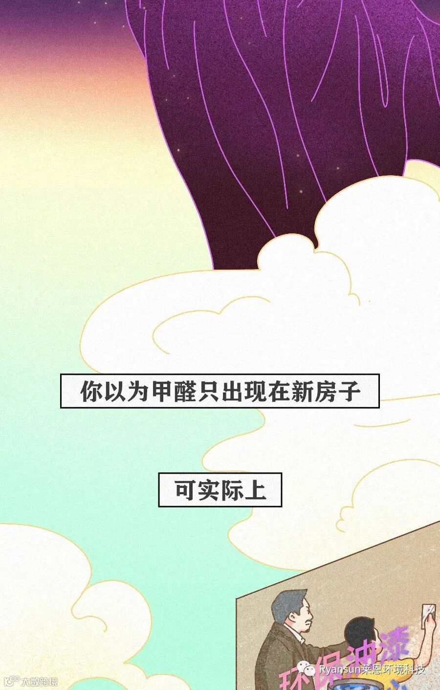 核心产品Ryansun®净醛因子采用渗透聚合反应原理,能强效渗透,直达材料深层,与材料中的甲醛等有害物质迅速结合发生逆反应,将原本需要3~15年才完成的缓慢反应缩短在24至72个小时内完成,生成高分子蛋白凝胶留在材料内部,具有活性持续聚合甲醛分子,长期质保的同时避免了甲醛反弹的问题,不会产生二次污染,安全无毒,即装即住!