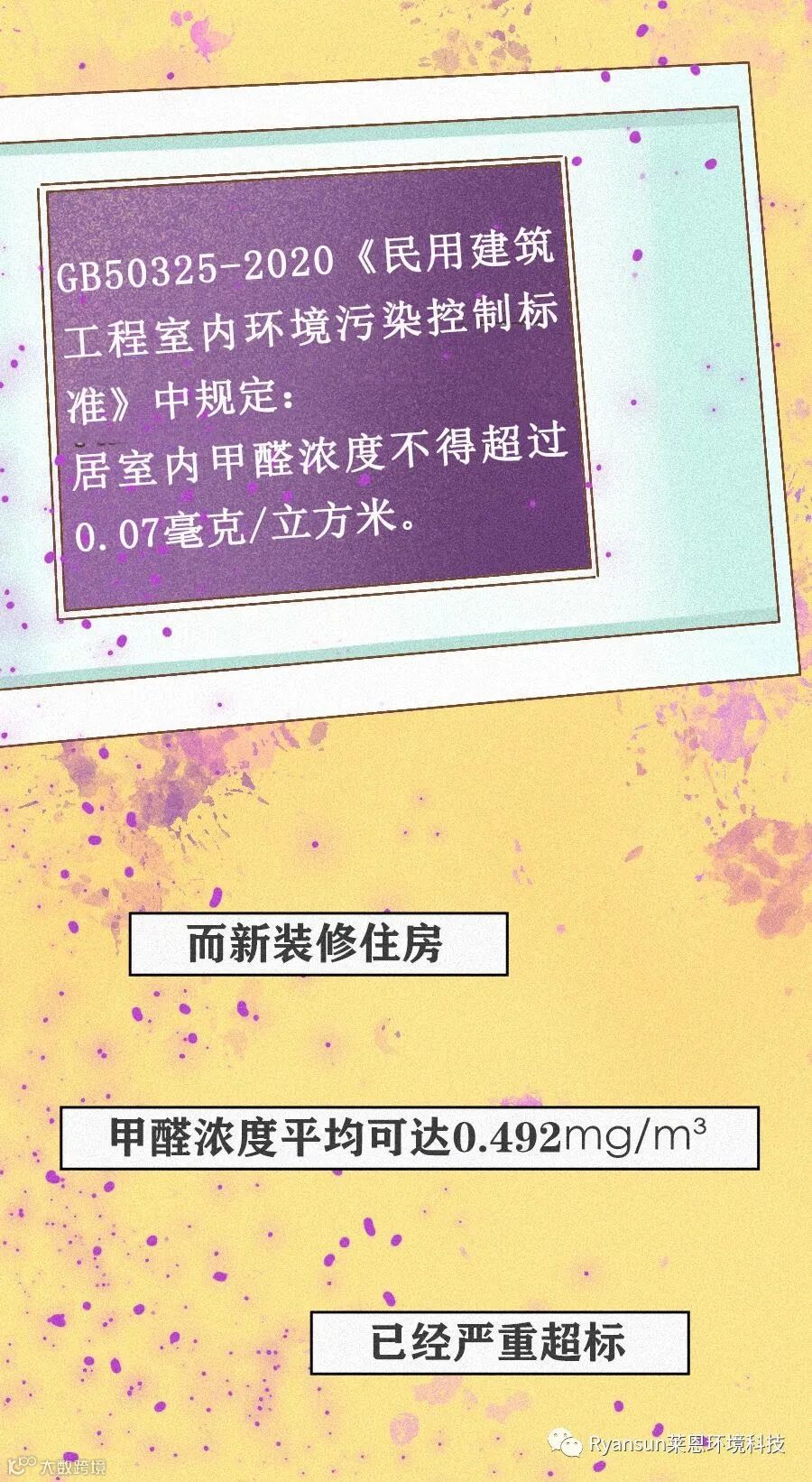 已经装修完或者增加了软装,家居等污染源的房子(包括已经住了好几年的老房子),一定要请专业机构检测一下甲醛是否超标,如果超标,可以使用Ryansun®净醛因子进行专业的室内空气治理,纯生物制剂,生物酶活性催化,高效捕捉聚合甲醛,保证治理完室内空气优于国家标准,绝不反弹,无忧住新家!