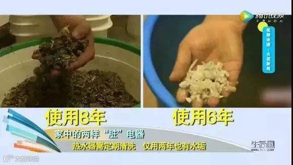看了作呕,再来看个对比。热水器里的水垢有多脏