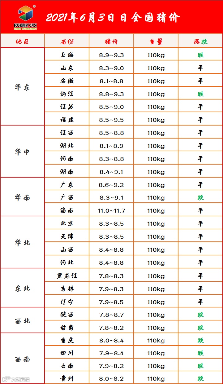 6月3日 全国猪价