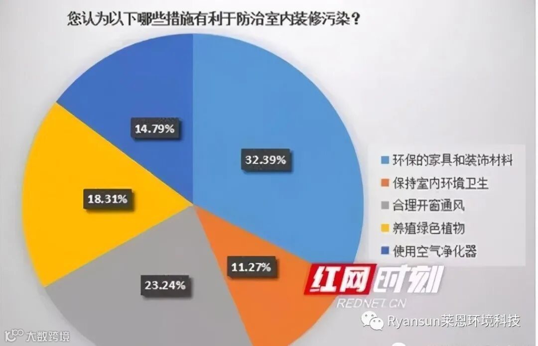 防治室内装修污染,选择环保的家具和装饰材料的占比最高,为32.39%