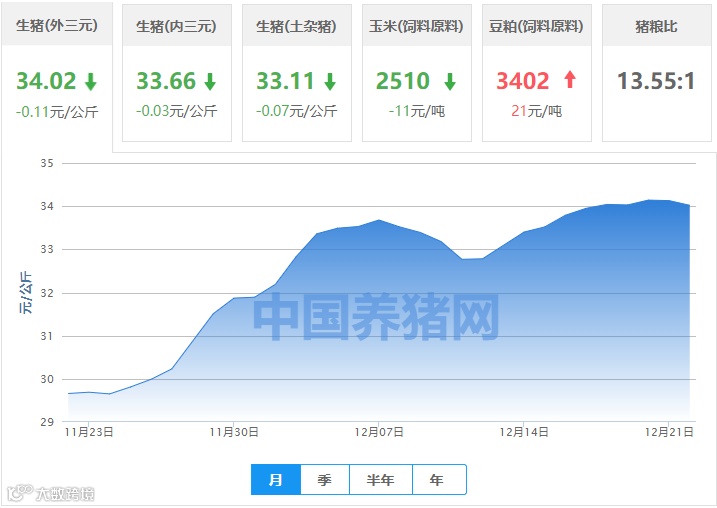 | 地区名称 | 外三元(元/公斤) | 内三元(元/公斤) | 土杂猪(元/公斤) | 玉米(元/吨) | 豆粕(元/吨) |