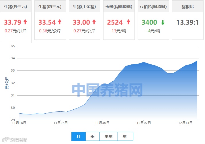 | 地区名称 | 外三元(元/公斤) | 内三元(元/公斤) | 土杂猪(元/公斤) | 玉米(元/吨) | 豆粕(元/吨) |