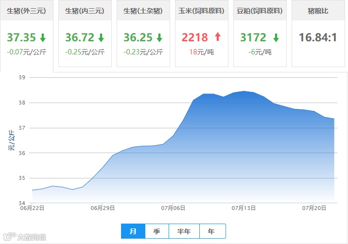| 地区名称 | 外三元(元/公斤) | 内三元(元/公斤) | 土杂猪(元/公斤) | 玉米(元/吨) | 豆粕(元/吨) |