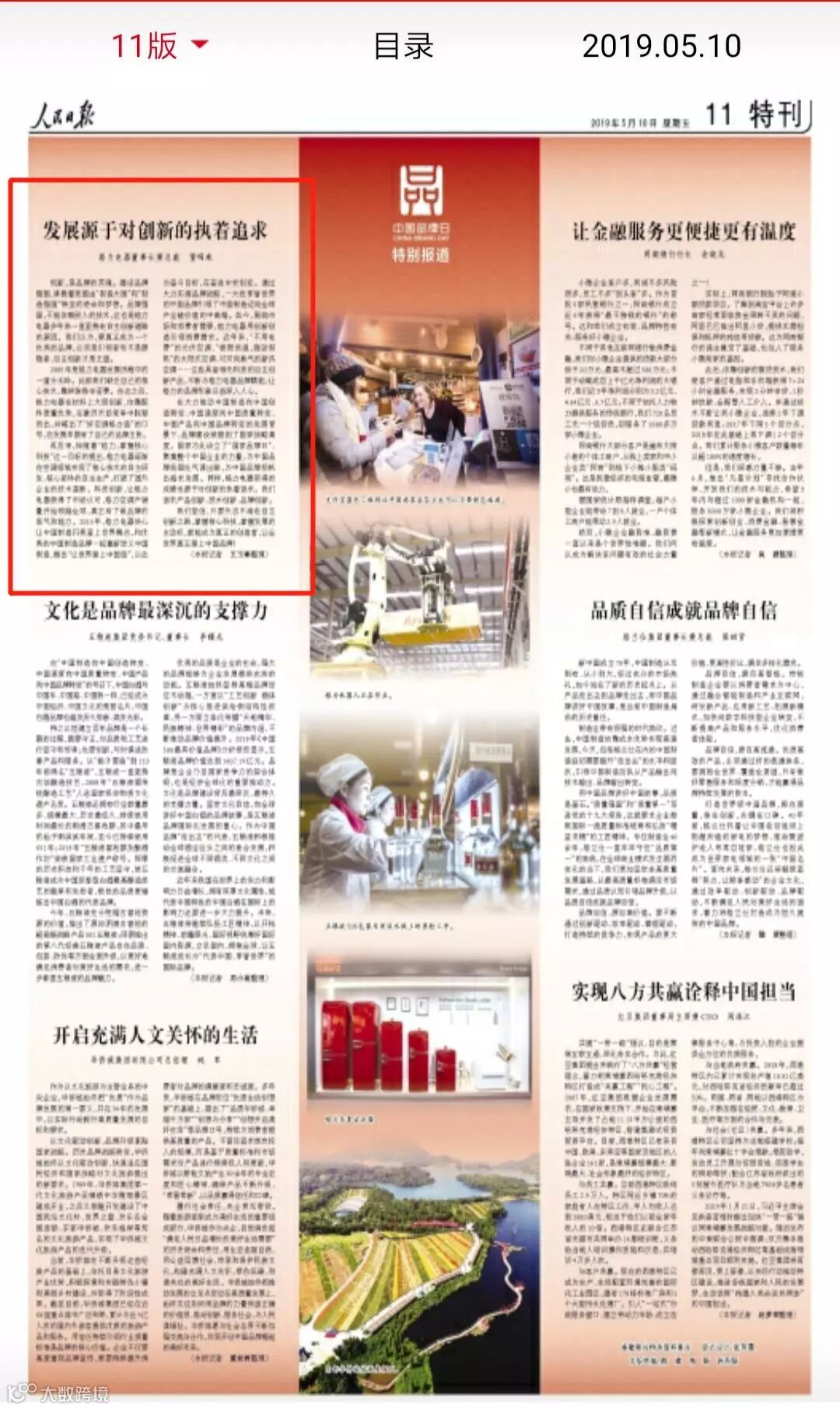 5月10号,第三个中国品牌日当天,《人民日报》刊发以董明珠署名的《发展源于对创新的执着追求》一文。