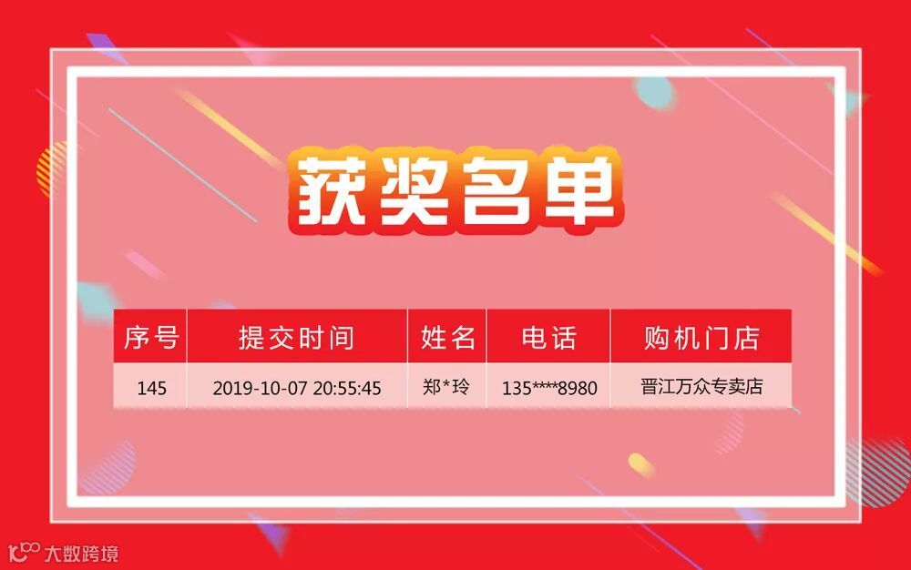 恭喜以上十位顾客分别获得