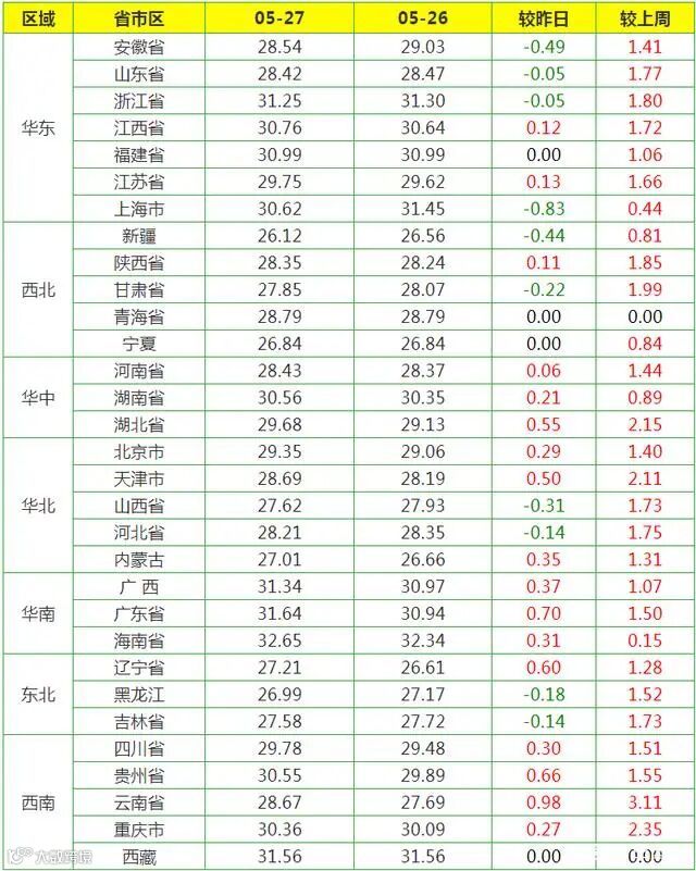 5月27日猪价动态: