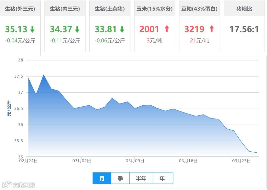 | 地区名称 | 外三元(元/公斤) | 内三元(元/公斤) | 土杂猪(元/公斤) | 玉米(元/吨) | 豆粕(元/吨) |