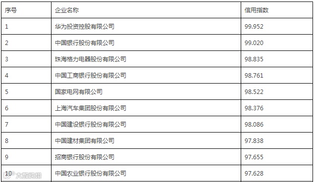 (此为部分榜单 来源:2019中国企业信用发展论坛)