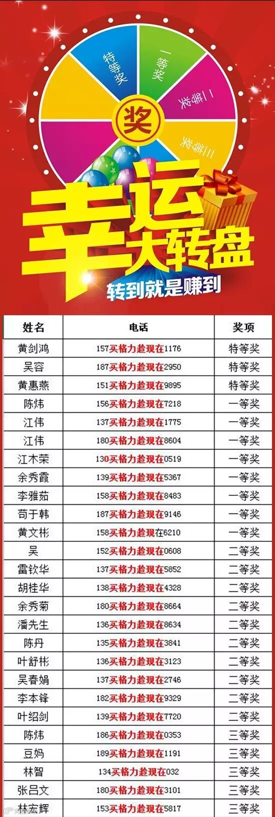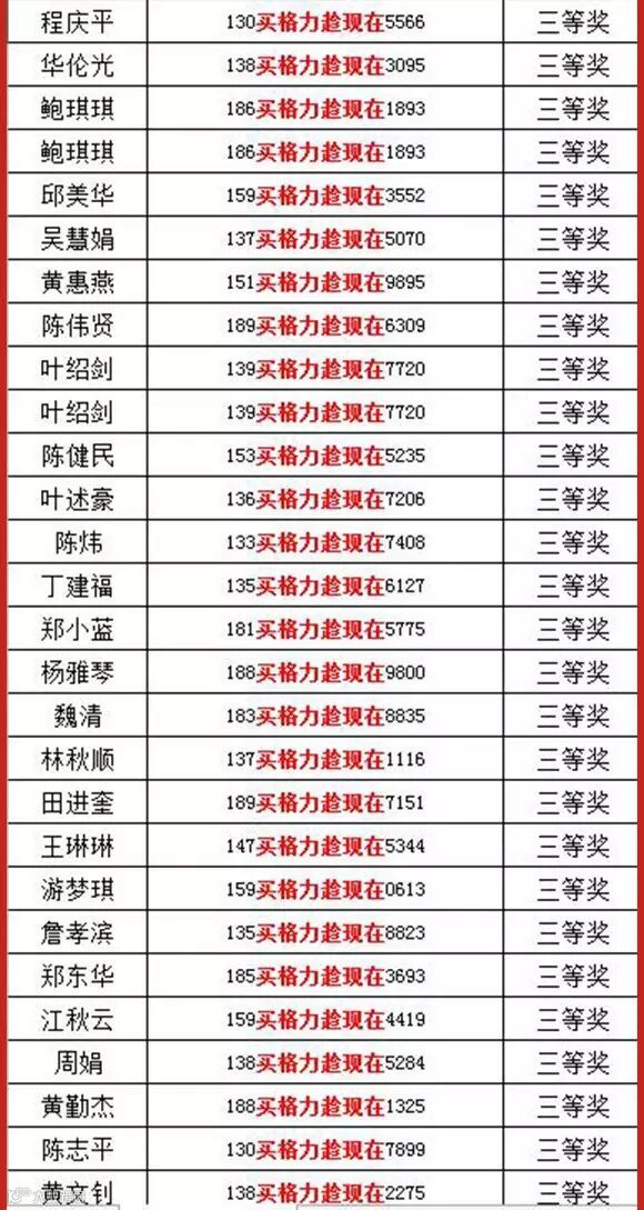中奖结果公布