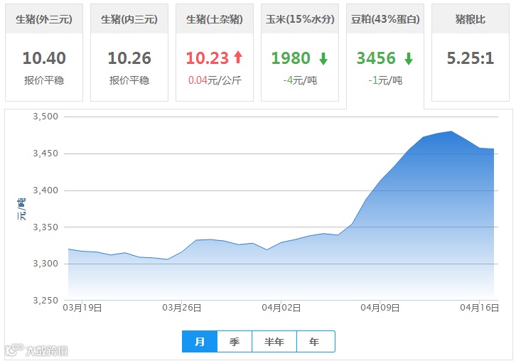 2018年04月17日全国外三元生猪价格行情涨跌表