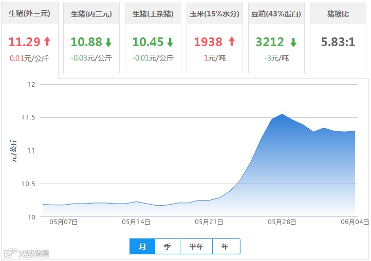 | 河北省 | 3104 | 3110 | -6.00 | -17.00 | |