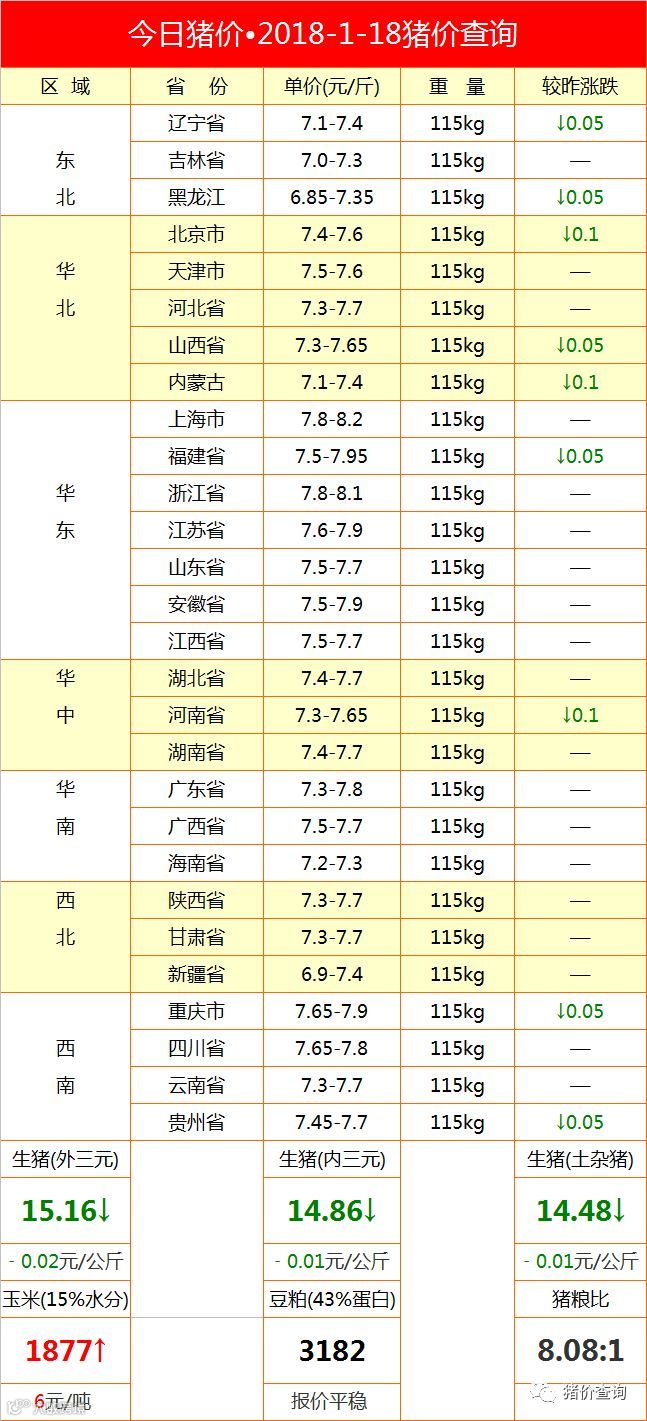 今日猪价•2018-1-18全国猪价 山东质德农牧