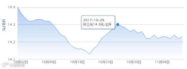 回看10月份,全国猪价大体呈“U”型走势,在国庆、中秋双节长假期内在14.4元/公斤的价格维持了一段时间后开始下行,并在10月19日触底14.13元/公斤后重新开启上涨模式。到10月底的时候开始在14.2元/公斤左右趋稳。从10月26日到今天已经持续半个多月微幅震荡调整。