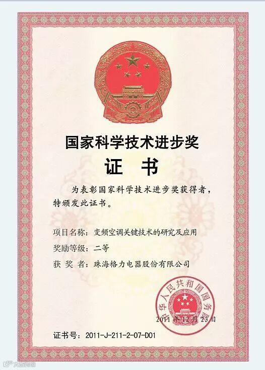 2010年,全世界第一台1赫兹变频空调诞生,格力变频技术在世界范围内率先实现压缩机在1赫兹低频状态下的平稳运行,将变频空调的节能性与舒适性提高了一个层次。2011年,格力1赫兹变频空调技术,荣获国家科技进步二等奖,这是国家科技进步奖设立20年以来唯一获奖的家用空调技术,这项技术不仅仅改写了空调行业低频的概念,更成为了节能环保的新主力。
