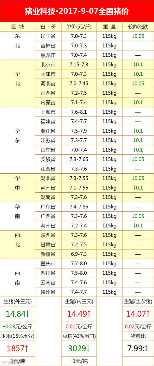 生猪出栏通常在7月底—8月初有一个高点,在9月份中上旬通常是逐步减少,然后在接近10月的时候再次增长。如果是咋猪价高的2011年、2016年,这个特点表面的更为明显。但是就今年的情况来看,猪价一直保持在不断下跌的状态之中,尽管在上半年5月、6月的时候不少人押宝十一,但是就整体的量上来看,不会出现类似于去年的高峰。因此,在目前9月初,猪价出现短暂调整很正常,但难以出现大跌的局面。