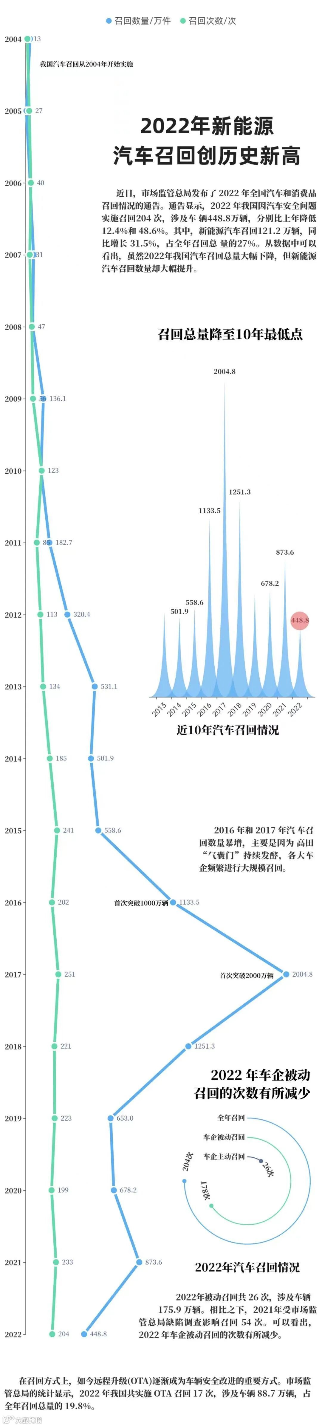 日前,特斯拉汽车(北京)有限公司、特斯拉(上海)有限公司根据《缺陷汽车产品召回管理条例》和《缺陷汽车产品召回管理条例实施办法》的要求,向国家市场监督管理总局备案了召回计划。自2023年5月29日起,召回生产日期在2019年1月12日至2023年4月24日期间的部分进口Model S、 Model X 、Model 3及国产Model 3 、Model Y汽车,共计1104622辆。