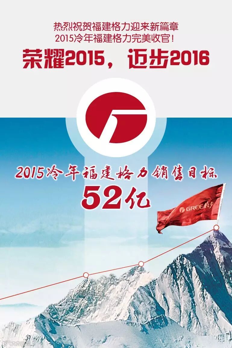 2015冷年,福建格力全年销售目标剑指52亿,家用空调提前一个月顺利完成总部销售任务,晶弘冰箱以全国第二的速度完成总部销售目标,中央空调继续保持高速增长!