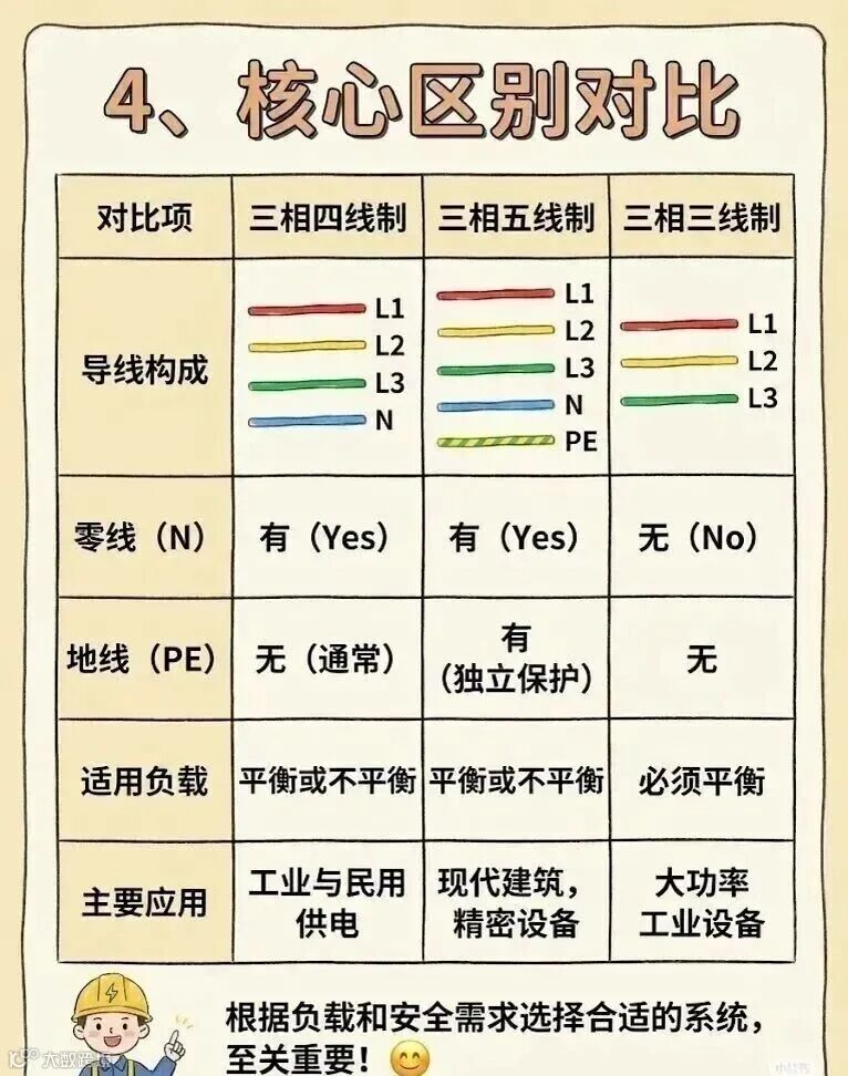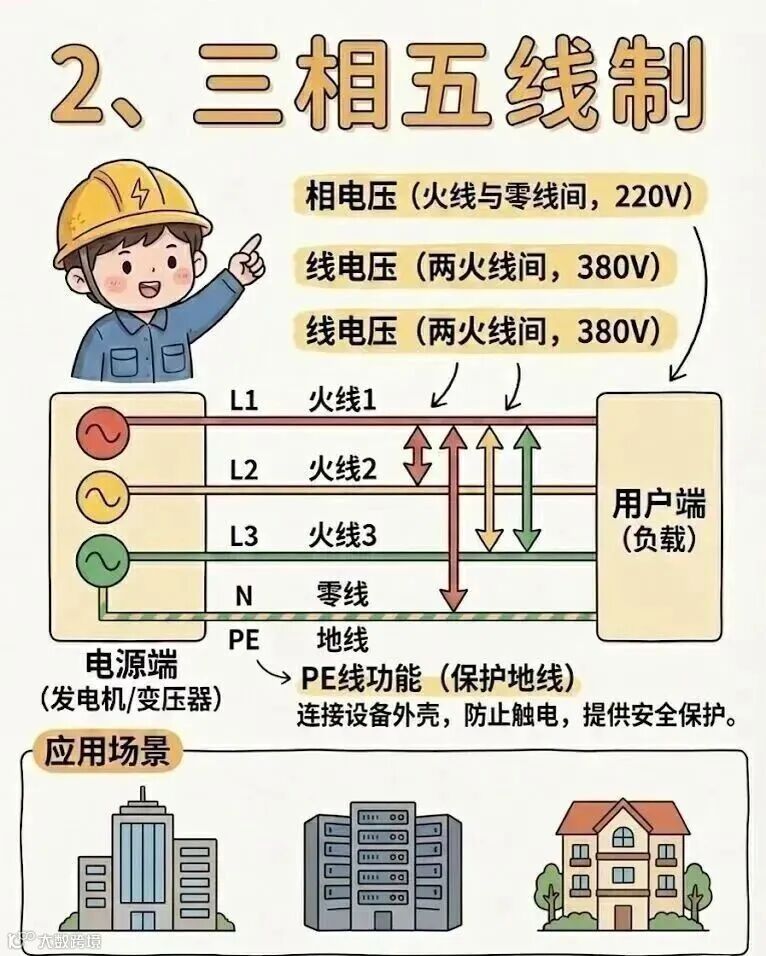 三相四线制、三相五线制、三相三线制的区别。