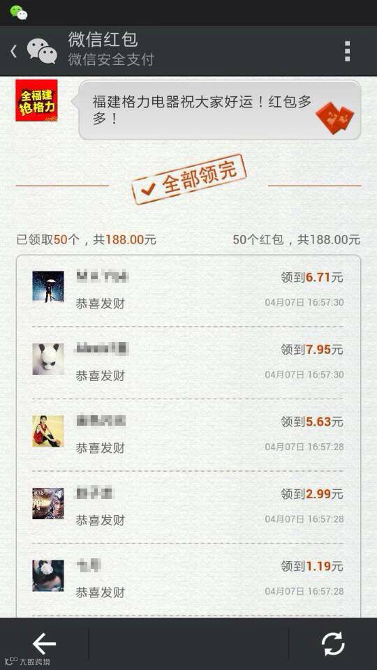 3、前100名分享朋友圈并发图用户由福建格力电器邀请加入抢红包群获得抢红包资格