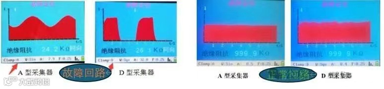 2)探测仪在总馈线屏后面测试时,尽量正负馈线一起钳。因为检测的是对地漏电电流,一般是毫安级别电流,总馈线屏出线通常有安培级别负荷电流,如果测试单根,则可能超过探测仪的检测量程(1A),或者负荷电流对故障电流带来很大干扰,影响正常判断。在后级保护屏或端子箱,由于负荷较小或没有,则可以测试单根。若探测仪测试过程中显示钳表饱和,说明被测回路电流较大,需选择正负一起测试。