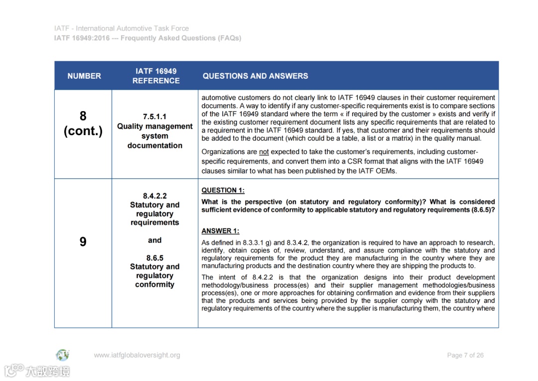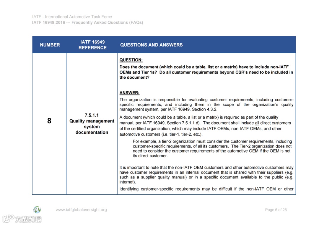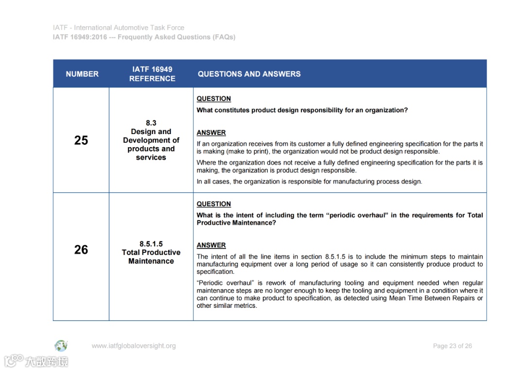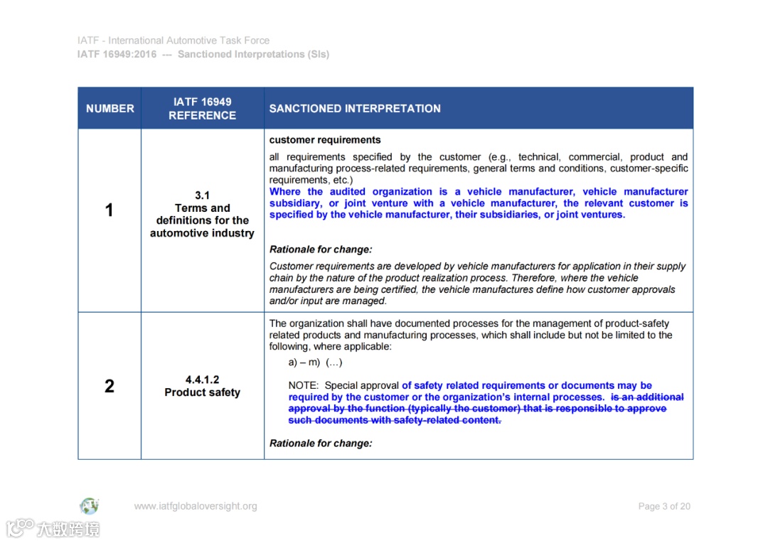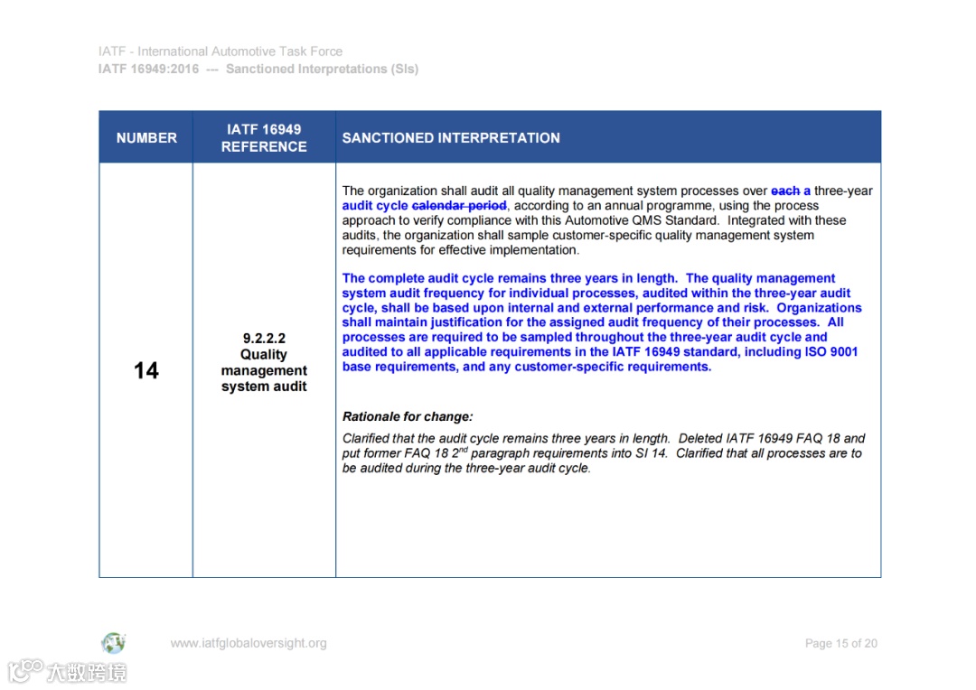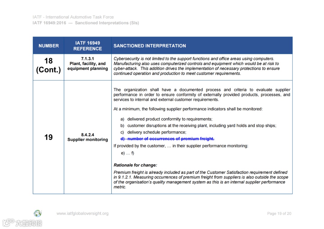 认可解释 (SIs) 和常见问题 (FAQ) 的文件可在IATF全球监督网站www.iatfglobaloversight.org上获得