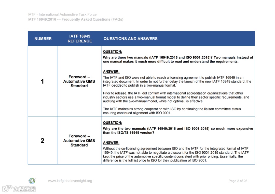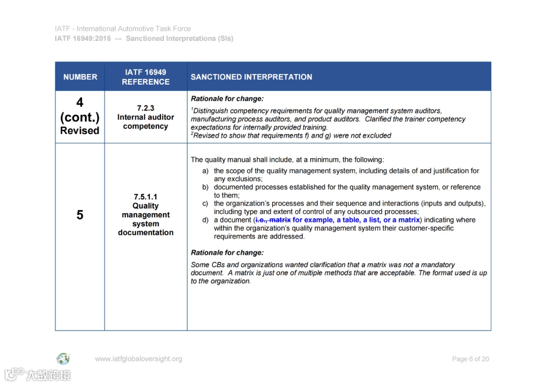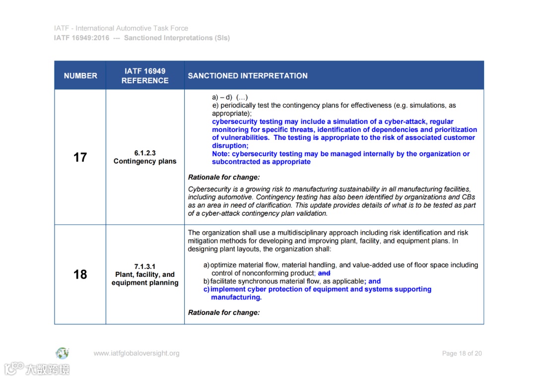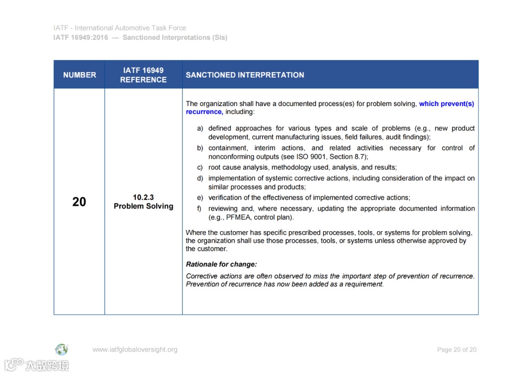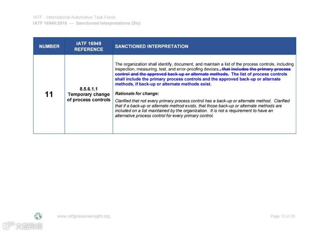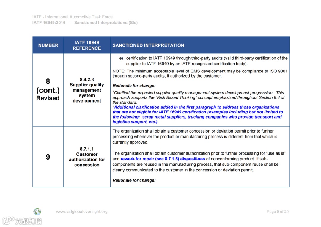 认可解释 (SIs) 和常见问题 (FAQ) 的文件可在IATF全球监督网站www.iatfglobaloversight.org上获得