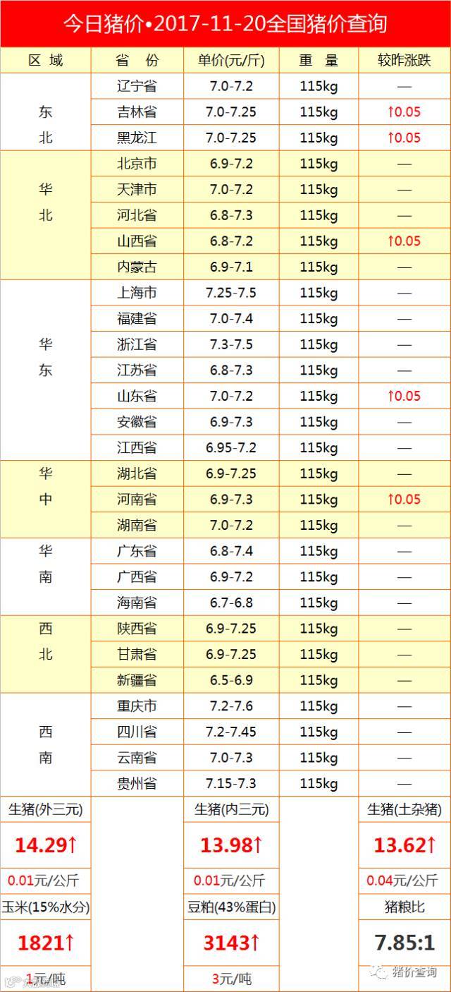 今日猪价•2017-11-20全国猪价 山东质德农牧