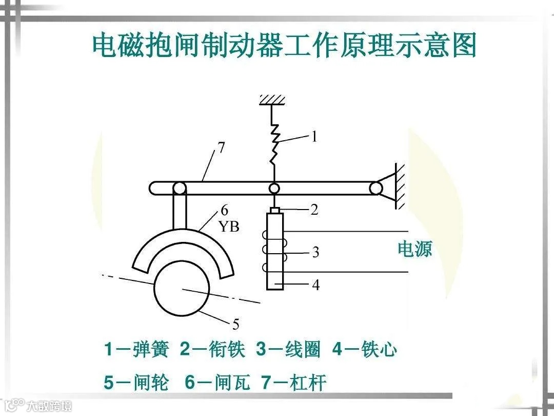 主要由两部分组成:制动电磁铁和闸瓦制动器。
